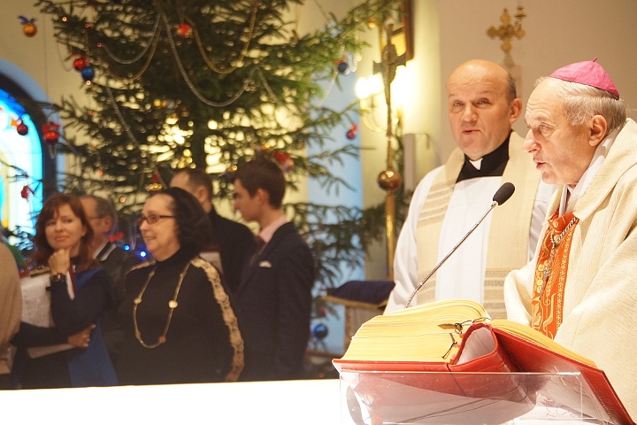 Епископ, настоятель, приходской хор и все верующие пели колядки на белорусском, польском, русском и английском языках, продолжая праздновать Рождество Спасителя.