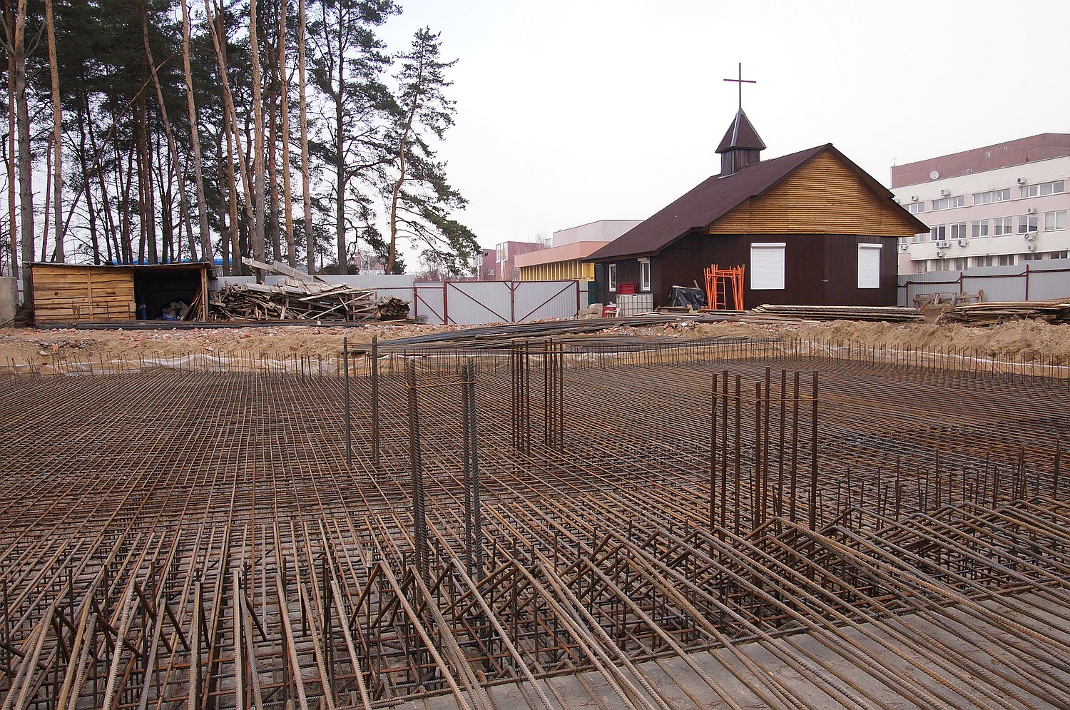 Одновременно продолжаются работы по возведению нового католического храма - строители завершают заливку фундамента. Напомним, костел появится на пересечении улицы Объездной и проспекта Речицкого, на въезде в Гомель со стороны Речицы.
