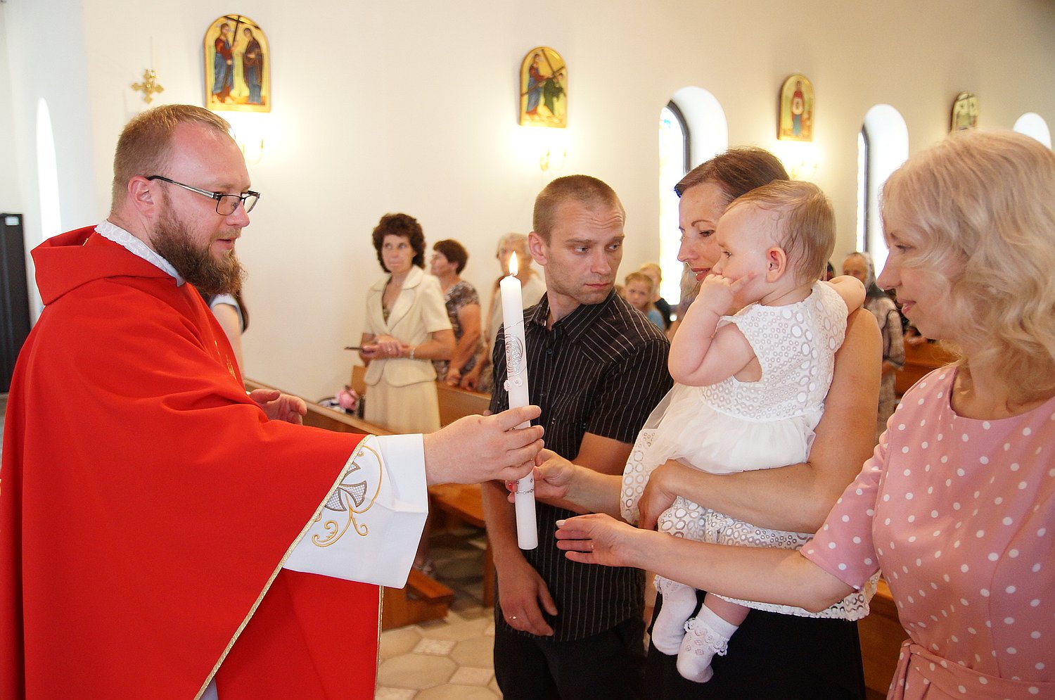 В торжество Сошествия Святого Духа в гомельском католическом храме крестили двоих детей многодетных супругов. Мария стала третьим ребенком в семье, а Доминика - пятым.