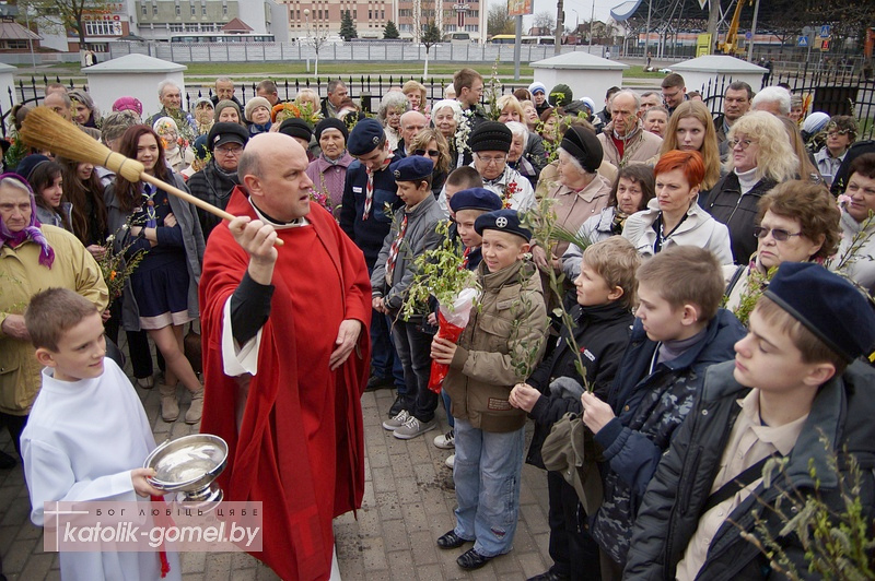 В этом году в один день - 13 апреля - и католики, и православные отмечают Пальмовое воскресенье (в местной традиции - Вербное). Это день торжественного входа Иисуса Христа в Иерусалим, когда народ приветствовал Его и клал под ноги свою одежду и пальмовые ветви, восклицая: «Осанна! Благословен грядущий во имя Господне, Царь Израилев!». Поскольку в Беларуси пальм нет, в этот день верующие приходят в храм с вербовыми ветвями, папоротником и другими букетами.