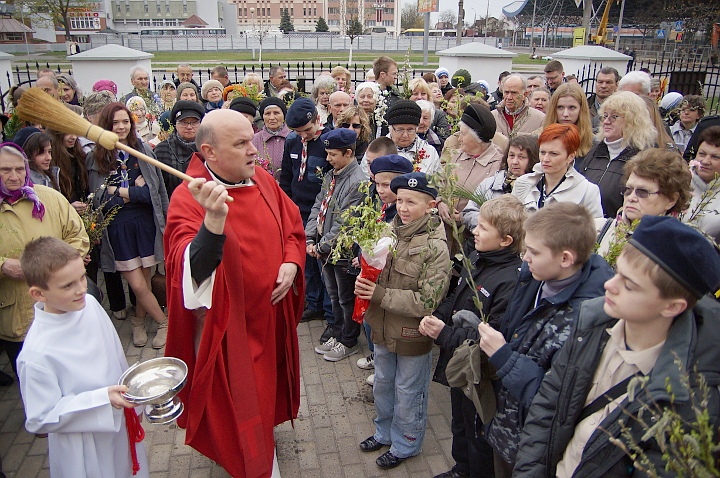 Настоятель костела отец Славомир отметил, что вербы должны лишь быть символом жизни христианина, которую он кладет под ноги Христу, отдает для служения Ему.