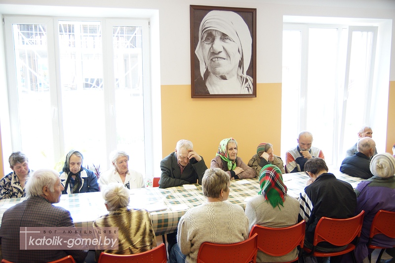Напомним, единственный в Беларуси Дом милосердия сестер ордена Матери Терезы уже более 20 лет работает в Гомеле. Сестры ордена матери Терезы в Гомеле занимаются многими делами, за которые мало кто хотел браться. Дом Милосердия служит приютом для нескольких больных мужчин и женщин, оказавшихся на улице без средств к существованию. Сестры ухаживают за ними, лечат, помогают бросить пить, восстановить документы и устроиться на работу. Миссионерки готовят обед для бездомных, раздают продукты и одежду для бедных семей и одиноких стариков, а летом приглашают детей из малообеспеченных и проблемных семей провести «Каникулы с Богом» в детском лагере. По воскресеньям ребята приходят на занятия в воскресной школе. Верующие помогают кормить бедняков, приходя на работу в столовую. Помочь может каждый: например, раздать еду, помыть посуду, принести одежду или обувь.