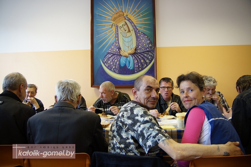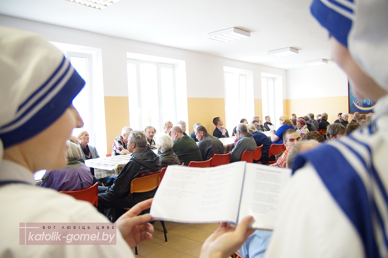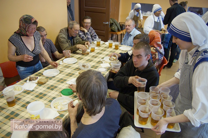 23 апреля в гомельском Доме милосердия сестры католического ордена Миссионерок Любви (сестры Матери Терезы) устроили праздничный Пасхальный обед для местных нищих и бездомных. На обеде собрались около ста человек. Помогали сестрам прихожане костела и викарий гомельского римско-католического прихода отец Доминик Шимански. После чтения Евангелия о Воскресении Иисуса Христа священник проповедовал нищим: