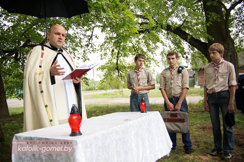 Координатор проекта «Грабовский парк», заведующий районным методическим кабинетом отдела образования, спорта и туризма Гомельского райисполкома Владимир Александронец пригласил католического священника отца Славомира Ласковского для молитвы об умерших, тела которых покоятся в склепах, и освящения усыпальницы.
