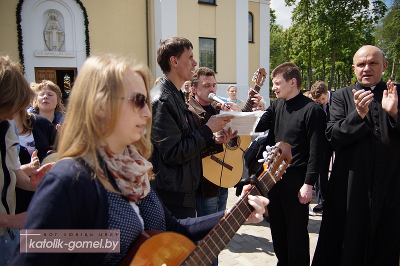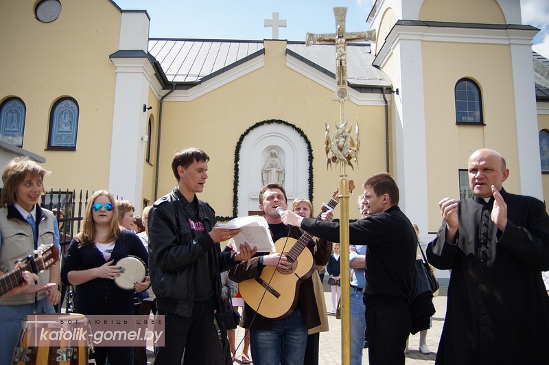 Каждое воскресенье Пасхального времени Неокатехуменальные общины гомельского римско-католического прихода проводят евангелизацию на улице. Во всем мире в это время католики Неокатехуменального пути выходят на центральные площади своих городов, чтобы нести прохожим Благую весть о любви и победе Христа. По белорусским законам без разрешения властей проводить массовые мероприятия на улице запрещено, поэтому в Гомеле евангелизация проходит на площадке перед храмом. Он находится на центральной улице города, благодаря чему все равно немало прохожих могут услышать о любви Бога к каждому человеку.