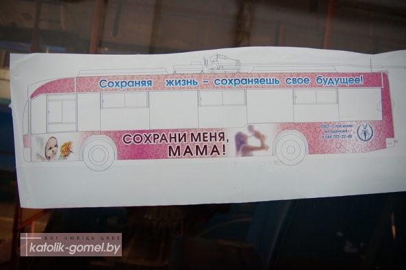 10 июня в Гомеле на линию выходит новый троллейбус, который оформлен необычной социальной рекламой. Слоганы троллейбуса призывают сохранить жизнь нерожденным детям. Идея "противоабортного" троллейбуса возникла у членов общественного объединения «Спасение младенцев», в котором состоят христиане разных конфессий, врачи-гинекологи и представителей других профессий.