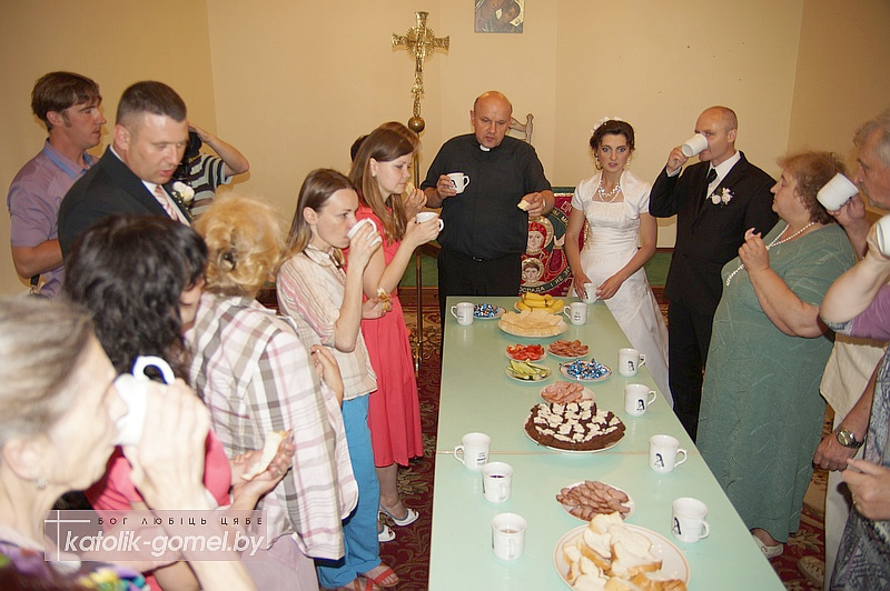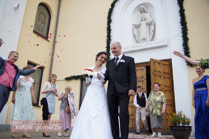 12 июля прихожанка гомельского костела Ольга Гвоздева обвенчалась со своим избранником Робертом. Она встретила будущего мужа в Польше, где жила последние годы. Ольга - из многодетной семьи, с самого детства она в костеле. Девушка долго искала свое призвание и, наконец, увидела его в браке. Венчание состоялось в Гомеле.